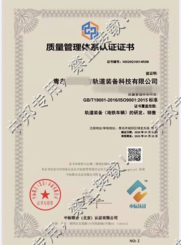 恭贺青岛XX轨道装备科技有限公司2020年1月顺利通过ISO9001认证!